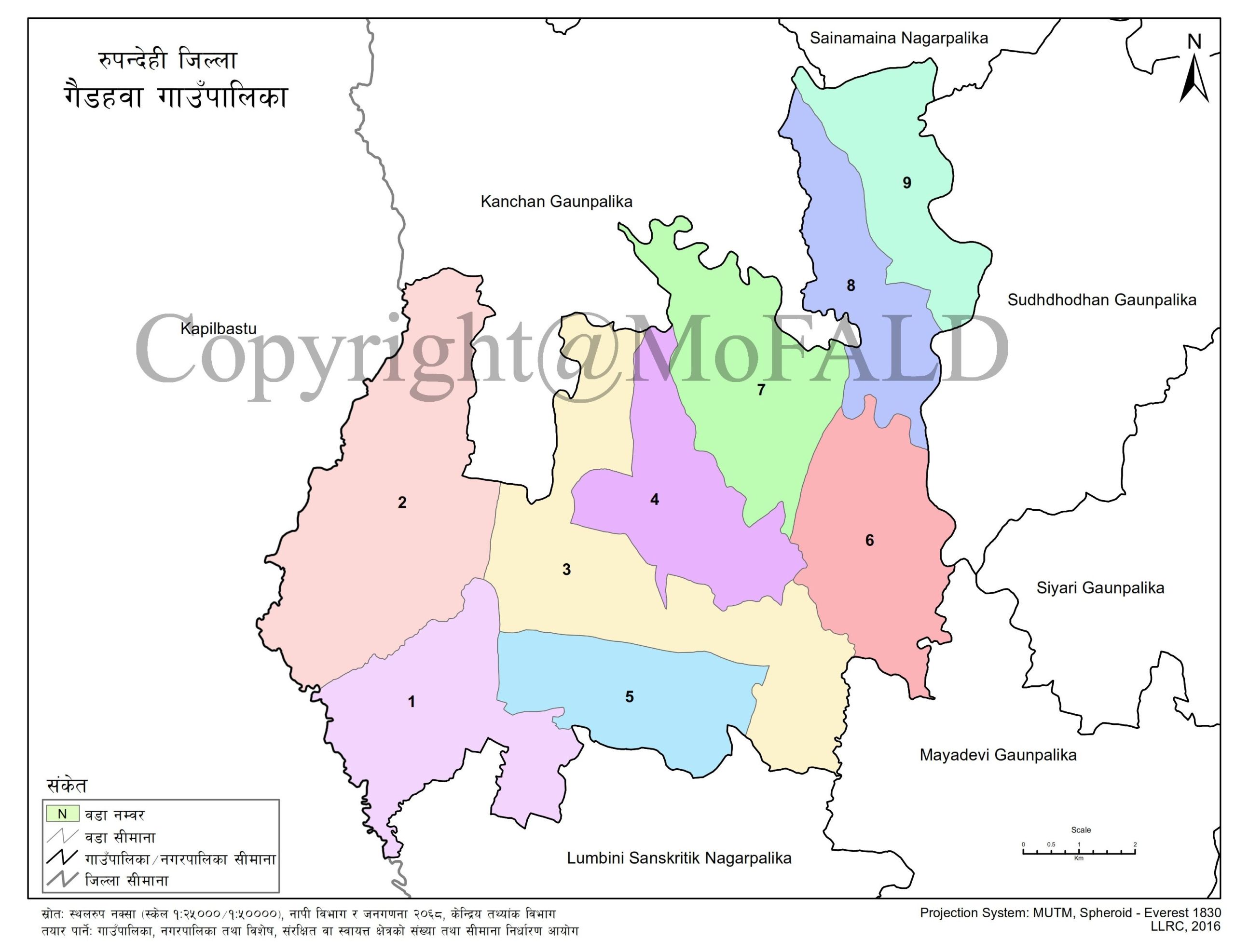 | ११ | मायादेवी गाउँपालिका | गोनहा, धमोली, हाटीबनगार्इ र कम्हरिया गा.वि.स. | ८ |