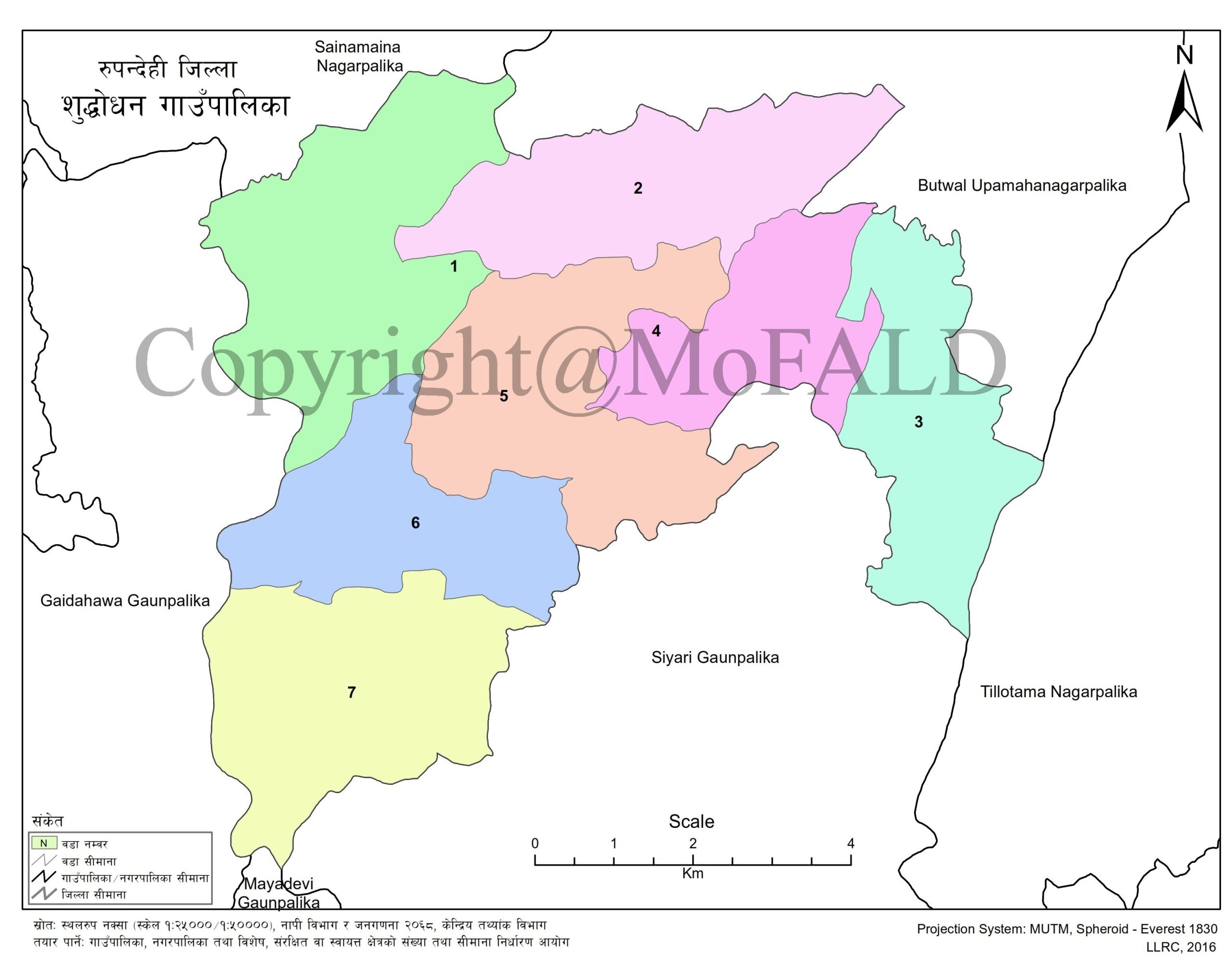 | १६ | शुद्धोधन गाउँपालिका | खड्वा बनगार्इ, मानपकडी, सौर्हवा फर्साटिकर र मानमटेरिया गा.वि.स. | ७ |